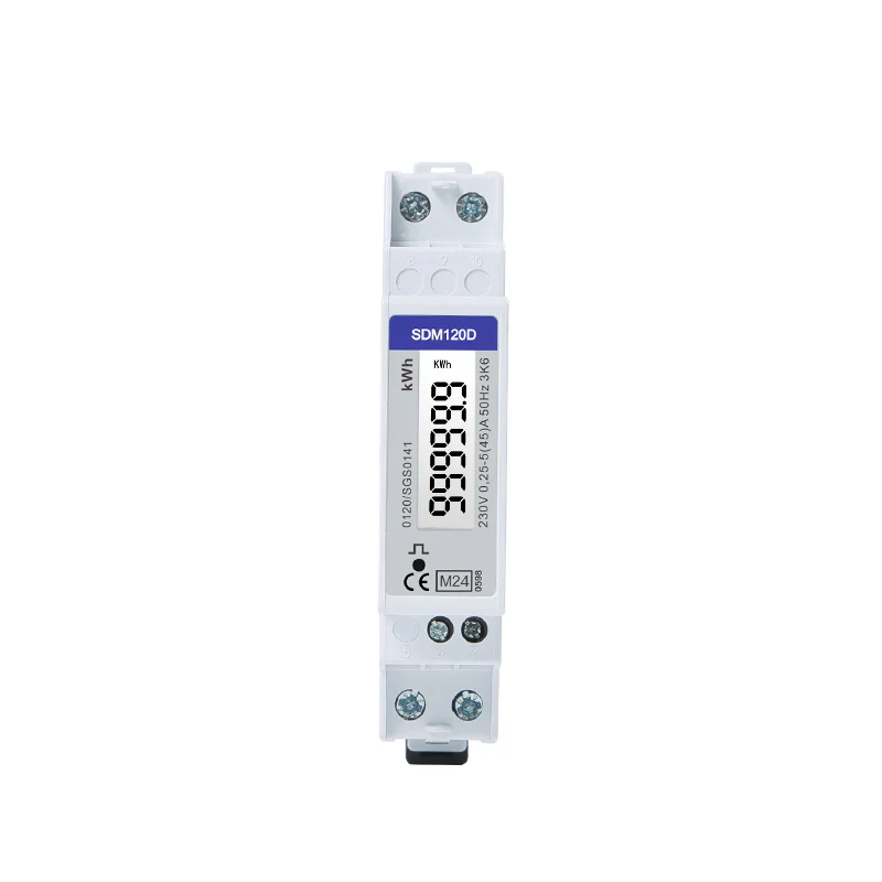 Elmåler / Bimåler, Eastron SDM120D – MID godkendt. 1-faset + N. Max 45A belastning. Perfekt til hvis du vil måle på varmepumpe eller andre 1-faset forbrugsenheder. Kan ikke nulstilles. Klart display som viser samlet forbrug. Med puls output.